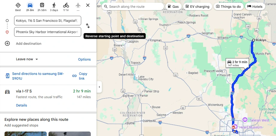 한식을 먹기 위해 어떤 유투버가 소개해준 FLAGSTAFF의 KOKIYO 식당을 찾아갔다. 길이 너무 고불고불하여 아이가 오바이트를 했다. 다행히 렌터카 안에서 하지 않고 점심을 먹으러 간 식당 앞에서 했다. 든든히 한식을 먹고 나서 공항으로 갔다. 그 사막 한가운데에도 스타벅스, 버거킹, 맥도널드는 있었다. 가는 길에 좀 쉬었다 가기 위해 커피 한잔 주문했다.