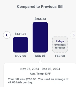 우리 집은 여름에 에어컨을 잘 안 틀어서 100불 이하로 전기요금을 낸다. 그러나 겨울에는 200-300불 정도 내는듯하다. 요즘같이 밤 기온이 영하 7도 정도 되면, 난방히터가 계속 돌아간다. 그래서 하루에 많게는 22.92불도 나오기도 한다 (12/23일 2024년). 여행을 갈 때 꺼 둘 수도 없고, 여러 가지로 문제가 있다.