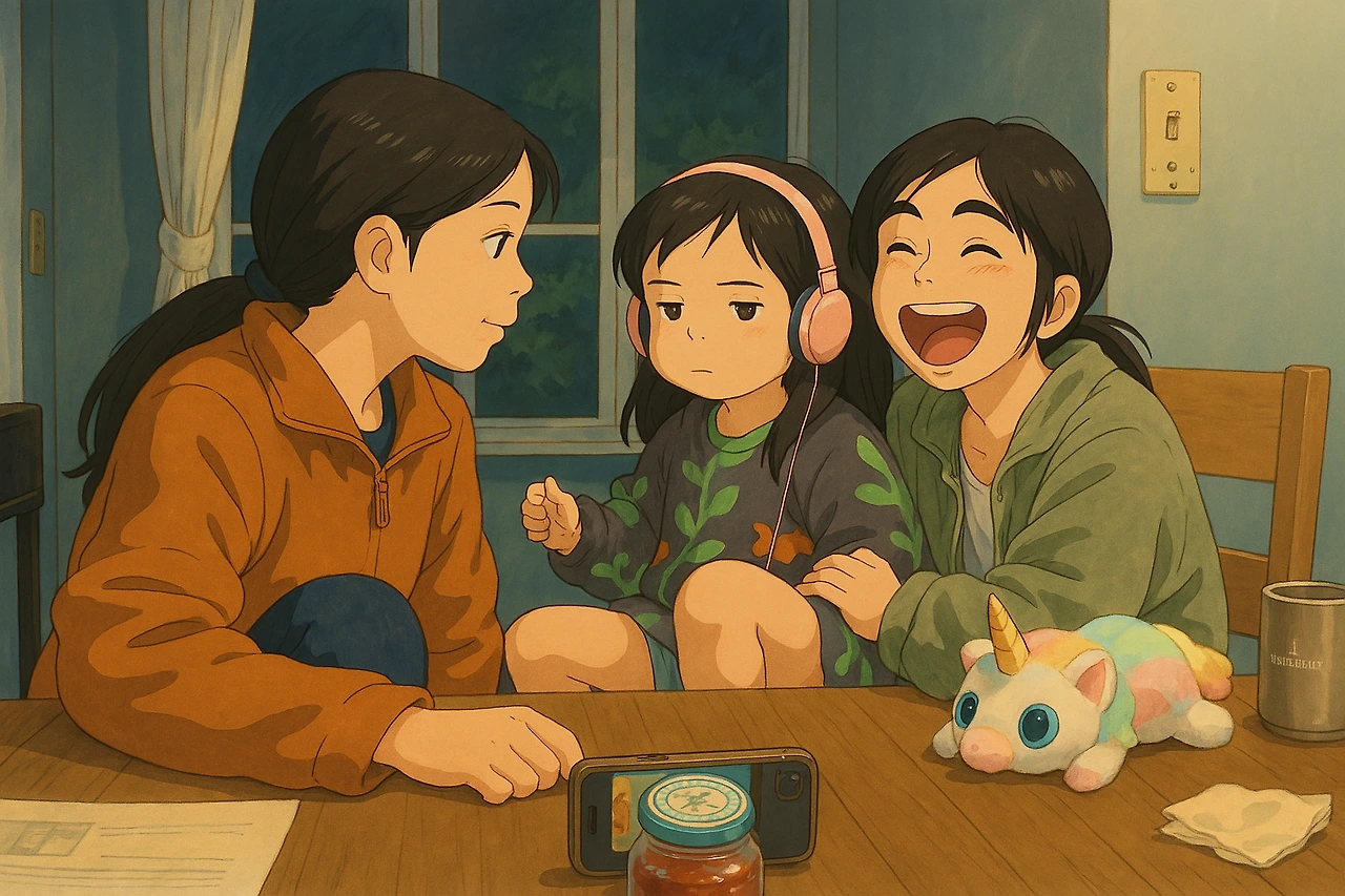 원하는 스타일이 있으면 말해줘. 혹시 애니메이션 제목으로 골라도 되고, “따뜻하고 평화로운 느낌”처럼 감정이나 분위기로 골라도 돼. 그럼 그걸 반영해서 다시 그려줄게!