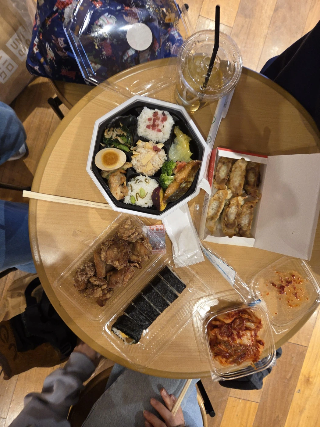 오랜만에 일본 딸기를 맛보자, 미국에서는 경험할 수 없는 맛이라며 아이들이 무려 3팩이나 먹었다. 미츠코시 백화점의 식품관에서는 김치까지 구매해 먹을 수 있는 세상이 되었다. 이전에도 있긴 했지만, 아이들은 며칠 만에 먹은 김치 맛에 만족해했다. MUJI에서는 양파, 과일은 물론 한국 냉동김밥도 판매했다. MUJI 6층 카페는 아무나 자리를 잡을 수 없었고, 주문한 고객에게만 테이블 번호를 알리는 안내 숫자를 주는 시스템이었다.