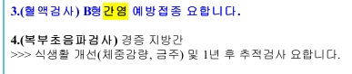 지난번 한국에서 건강검진을 한 후 결과서를 보니 B형 간염 예방접종이 필요하다는 소견과 식습관을 개선하여 살을 빼라는 추천이 있었다. 비만도가 정상범위에서 약간 벗어났으나 미국에 살면서 이 정도면 선빵했다고 생각한다.