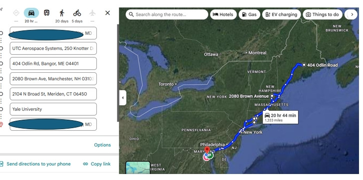아래는 예약된 호텔을 기준으로 우리가 갈곳을 대충 찍어보았다. 혹시 아직 여름 일정 계획을 못 하신분이 계시면 추천해봅니다. 호텔은 모두 IHG카드 포인트로 해결했고, BANGOR 에서는 2박을 한다. 마지막 호텔에서 YALE대학이 매우 가까운데, 그곳에 다시 방문해보려고 한다. Beinecke Rare Book LIBRARY에 아직도 조선시대 고지도가 있는지 보러가기 위함이다. 2년전에 방문했을때 큰 감동을 받아서 또 보러간다. 남한과 북한을 쉽게 넘나들던 조선시대......과거로 시간여행을 할 수 있다면 조선시대에 한번 다녀오고 싶다.