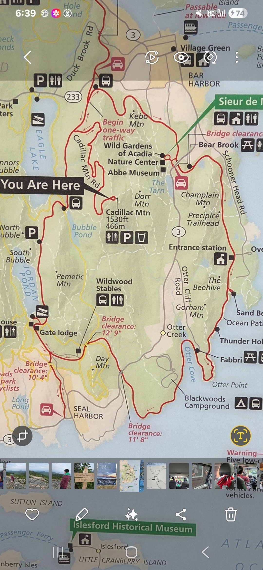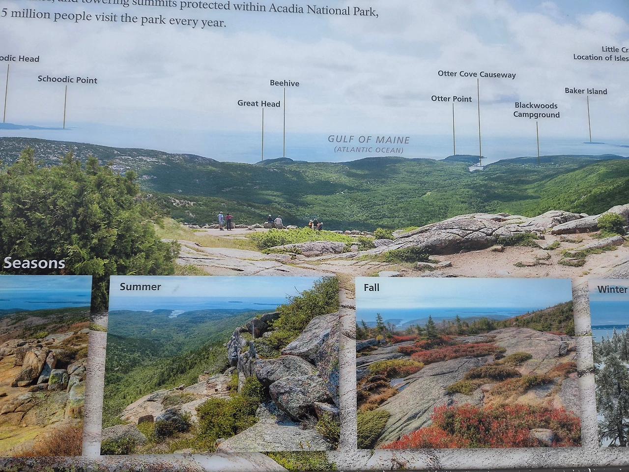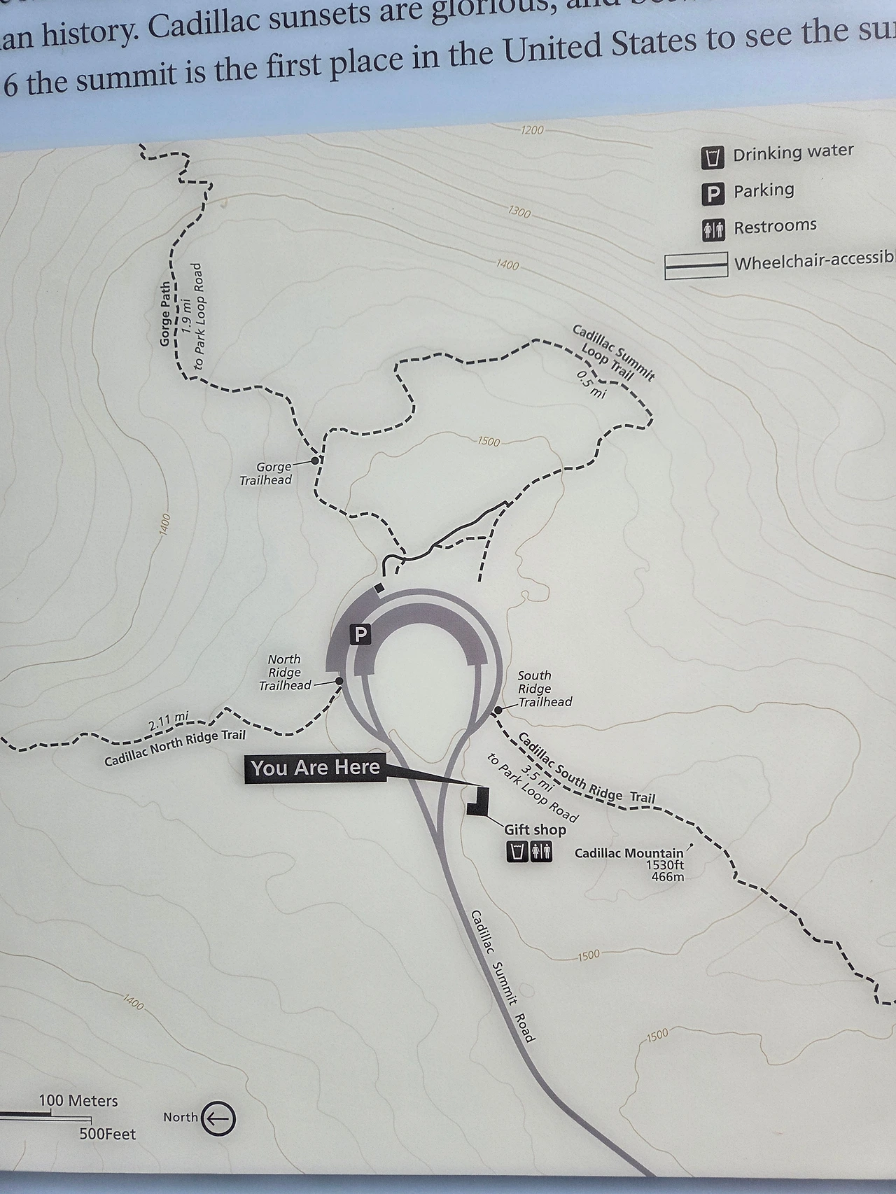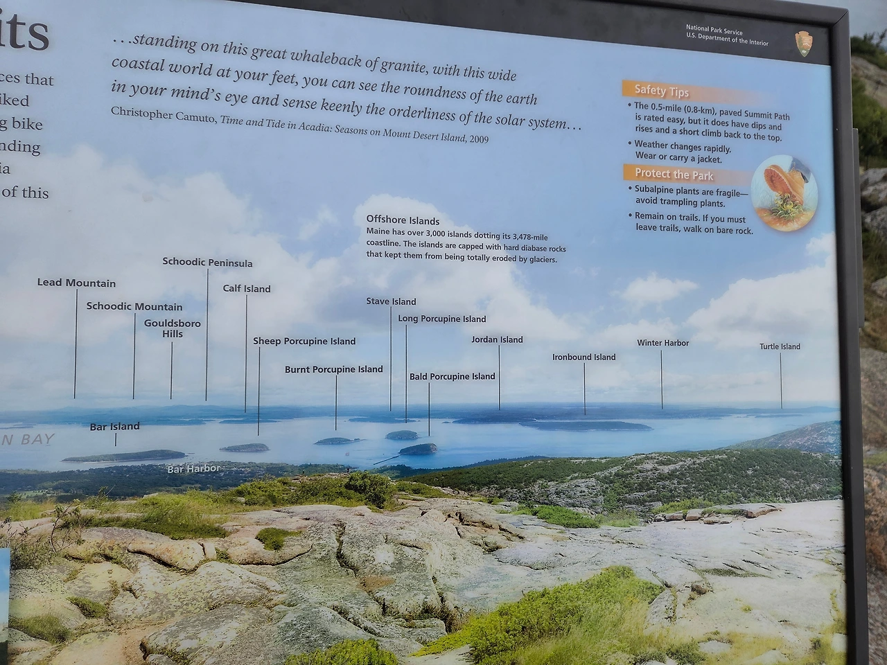 이곳을 나와 oneway인 도로로 두 곳 정도 더 구경을 하고 캐딜락 산입구에 도착했다. 미리예약한 4시 4시 30 입장 타임엔트리바코드를 보여줘야 한다. 십 분 정도 달려 정상에 도착했다. 점퍼를 안 들고 와서 너무 추웠고, 긴팔티를 목도리처럼 둘렀다. 해지는 것을 보려고 했으나 커피 한잔하고 하산했다.
