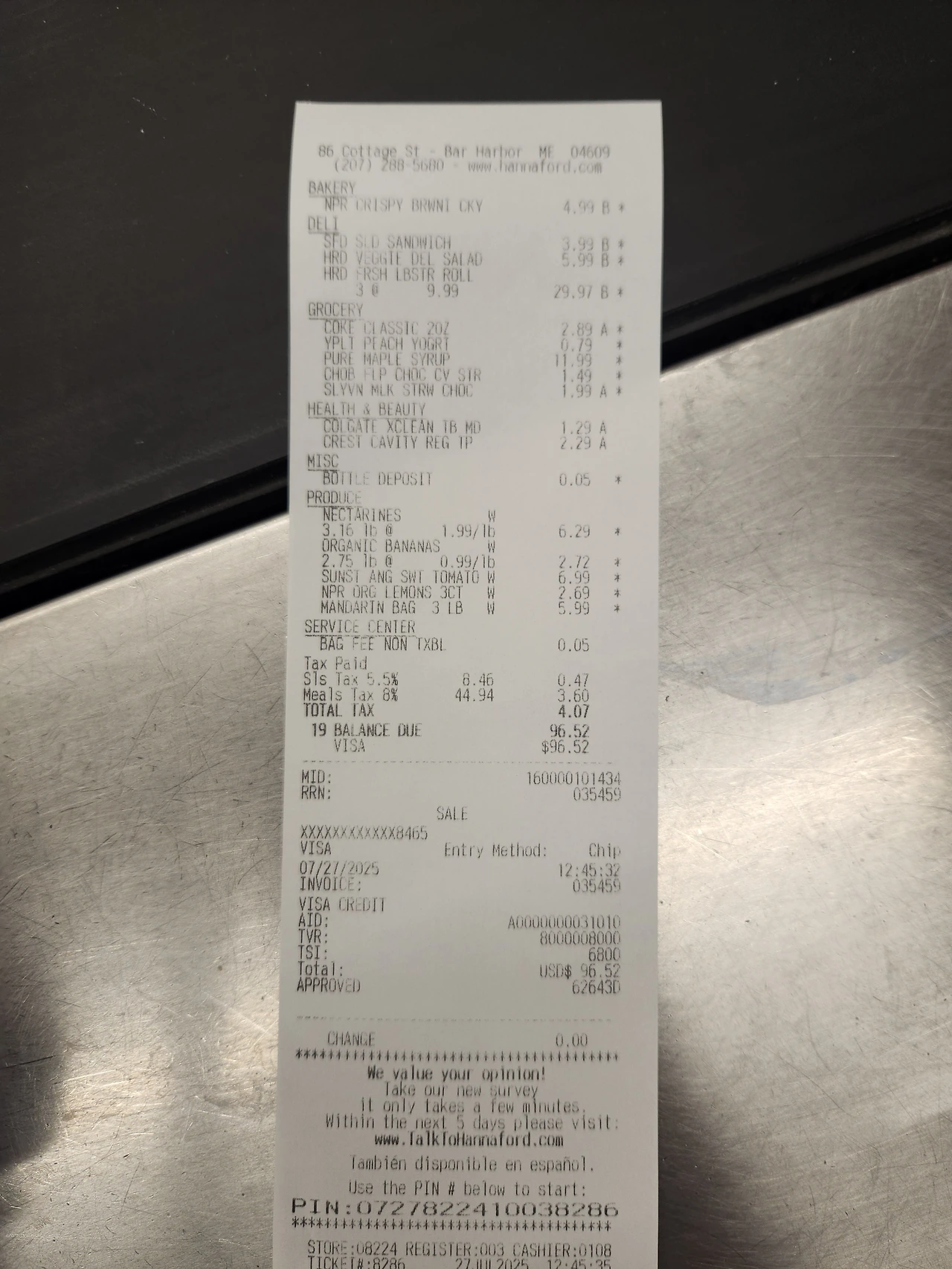 국립공원 안에 nature center가 있어서 갔는데, 이곳 안에는 식사를 할 공간이 없다는 것이다. 우리는 다시 나와서 hannaford라는 이곳의 유명한 마트로 다시 나왔다. 바하버로 다시나 왔다는 이야기이다. 점심 먹을 것을 사려고.ㅡㅡㅡ랍스터롤이 9.99불이네. 빵 안에 랍스터를 넣은 것인데. 작년여름 보스턴공항에서 45불인가에 사 먹었다.