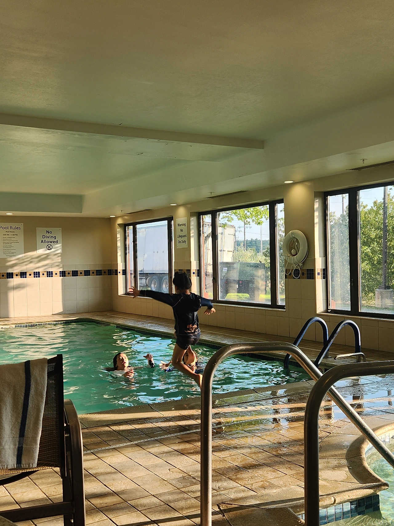 숙소로 왔는데 또 호텔수영장을간다. 기운이 팔팔 넘치나봐. 남편은 뭐 먹을거리를 산다고 9분거리 홀푸드마켔에갔다.