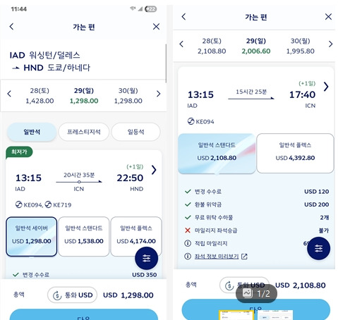 그런데 막상 검색해 보니, IAD–ICN 대한항공 편도 요금이 나와 소아 합쳐 약 277만 원인 반면, 인천에서 하네다로 한 구간 더 가는 IAD–ICN–HND 노선은 오히려 1,798,000원ㅡ두명ㅡ으로 훨씬 저렴했다. 알고 보니 IAD–ICN–HND가 더 저렴한 이유는 항공사의 일본 시장 확보 전략과 미국–한국 직항 수요의 가격 탄력성 차이 때문이라고 한다. 즉, ‘거리’보다 ‘시장 경쟁’이 항공권 가격에 더 큰 영향을 미치는 셈이다.
