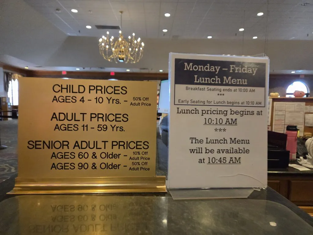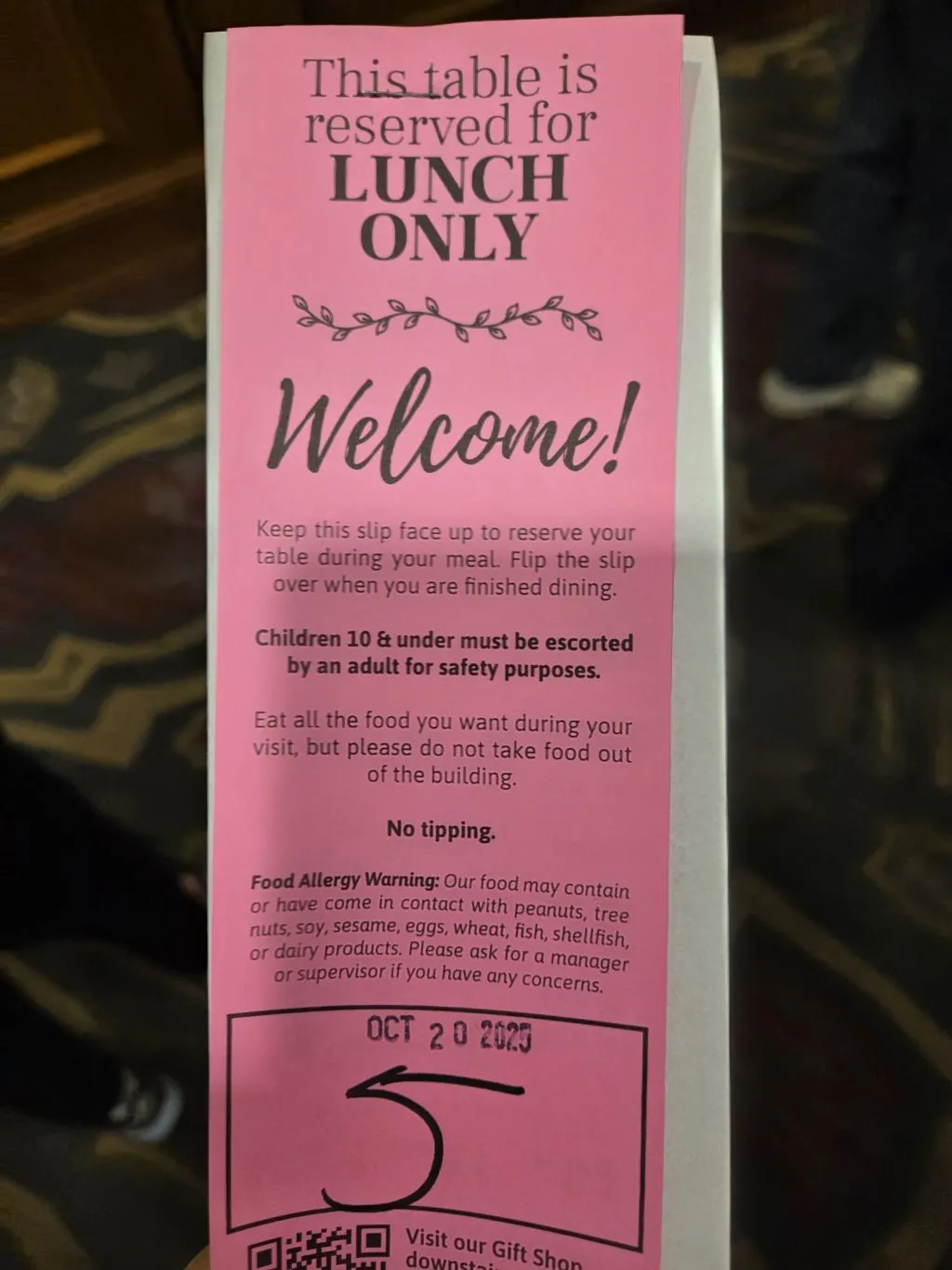 규모: 뷔페 라인이 약 200피트(≈ 60미터) 길이에 달하며, 매우 많은 좌석을 갖추고 있어 바쁜 날엔 수천 명의 손님을 수용할 수 있습니다. 입장료를 내고 표를 받는데, 식구가 많은 사람들은 그분들이 적당한 자리를 안내해준다. 그 자리에는 숫자가 써 있는데, 잘 보고 찾아오라고 적혀있는 것 같다. 식당이 너무 크다. 만약 두명이 간다면 그냥 아무곳에나 가서 앉으면 된다.