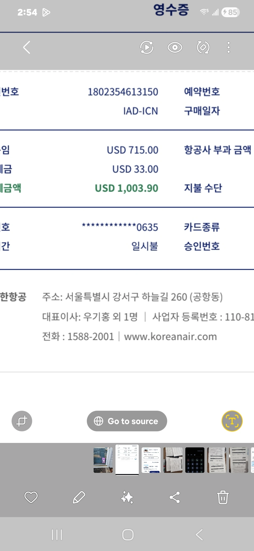 미국 IAD 공항에서 한국으로 가는 편은 마일리지가 부족해 한 명은 현금으로 1,003.90달러를 주고 구매했고, 다른 한 명은 마일리지 좌석이 나와 세금 284.40달러만 내고 발권할 수 있었다. 다행히 평수기 기준으로 좌석이 있어 무사히 구매를 완료했다. 대부분 여름방학을 시작하는 6월 중순 출발이라 성수기는 아닌 듯하다.