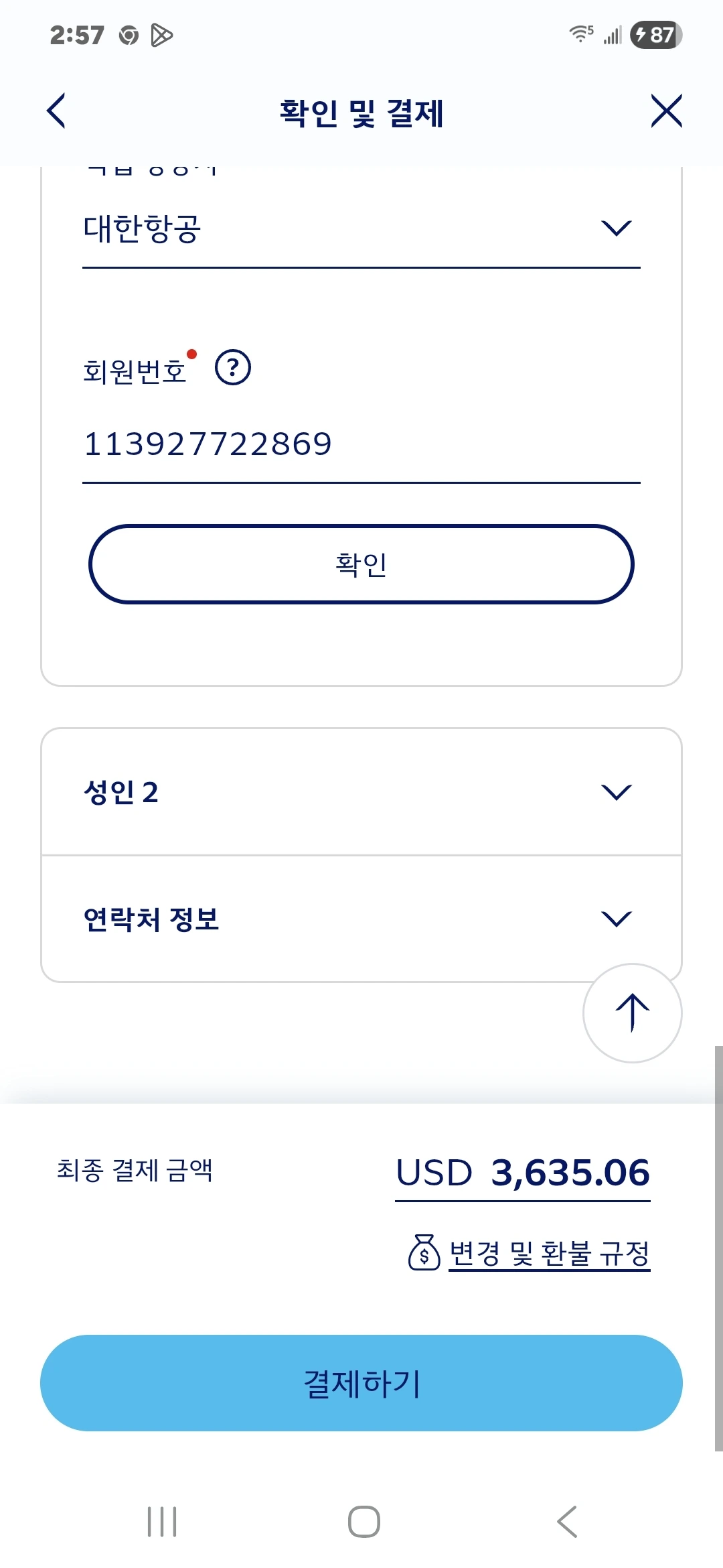 둘이서 갈때 왕복요금 3635.06불