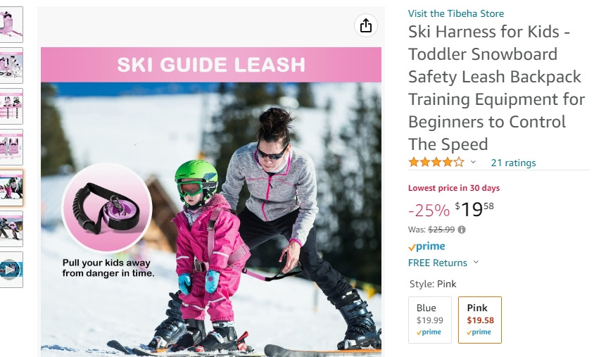 ski training 장비- 이것이 있었으면 5살짜리 꼬마에게 스키를 가르쳐주기가 훨씬 쉬웠을듯하다. 어린아이들은 폴대를 안 잡고 그냥 스키만 끼고 내려가는 것을 많이 보았다. 가격이 비싸지도 않고 핑크색으로 엄마가 뒤에서 잡아주면 트레이닝이 훨씬 쉬울듯하다. 아래의 링크에 가면 동영상을 볼 수 있다.