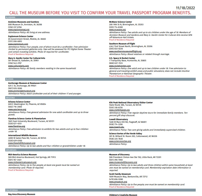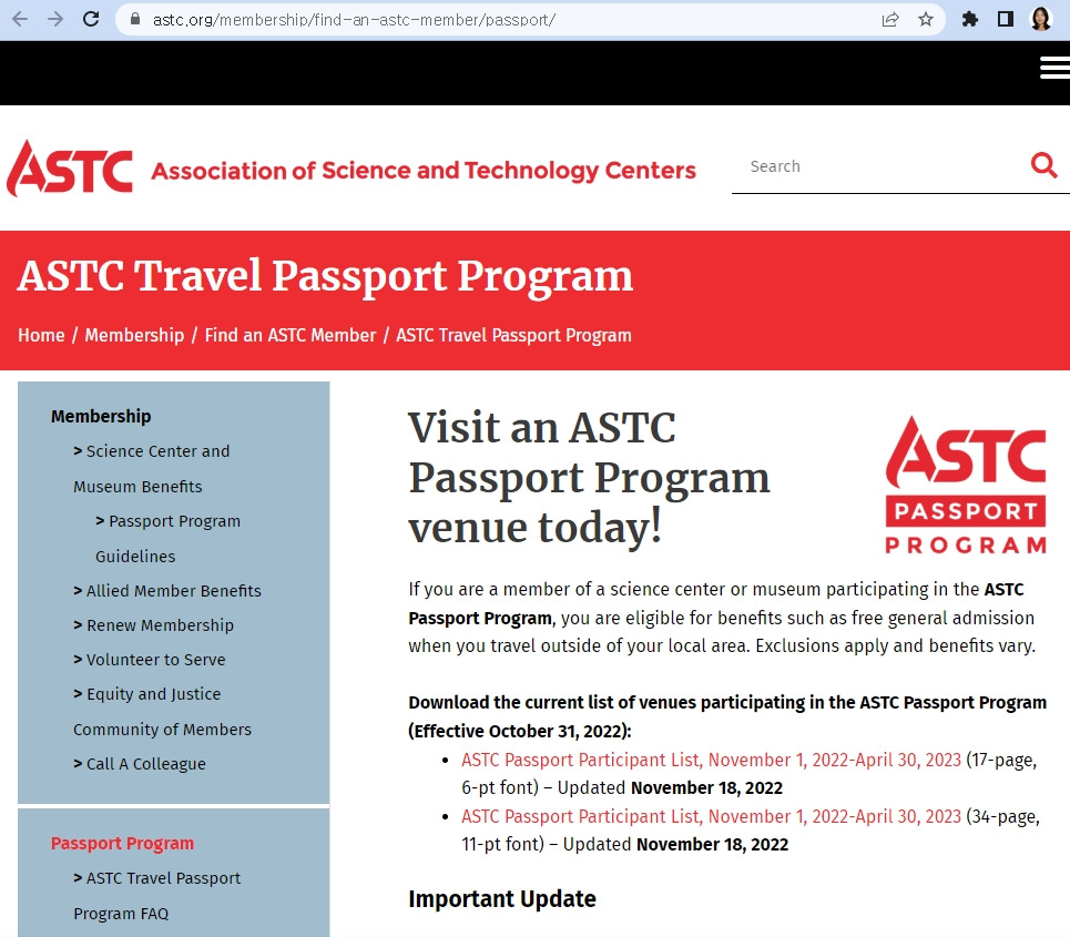 3) 멤버십 활용 잘하기?? About This Deal의 목록에 보면 Free or discounted admission at ASTC Passport–participating science centers이라는 문구가 있다. ASTC는 매우 중요하다. 전미에 리스트업 된 과학관이나 어린이박물관등 갈 곳이 엄청나게 많다. ASTC 이것은 ASSICIATION OF SCIENCE AND TECHNOLOGY CENTERS의 약자이다. 거기 홈페이지에 빨간색으로 표시된 ASTC Passport Participant List, November 1, 2022-April 30, 2023 (17-page, 6-pt font) – Updated November 18, 2022 여기를 클릭해 보면 어디 어디를 갈 수 있는지 주별로 쉽게 알 수 있다. 정말로 이게 가능해? 내가 처음으로 확인해본것이 플로리다주 마이애미의 과학관이었다. 정말로 무료로 티켓을 받아서 입장했다. Admittance Policy가 다 다르므로 잘 읽어보고 가야 한다. 우리 가족은 보통 여름에 8박 9일로 휴가를 가는데, 우리 집에서 BOSTON까지 이 패스로 갈 수 있는 곳만 골라서 여행을 했다. 5인가족이라서 입장료를 매우 절감할 수 있었다.