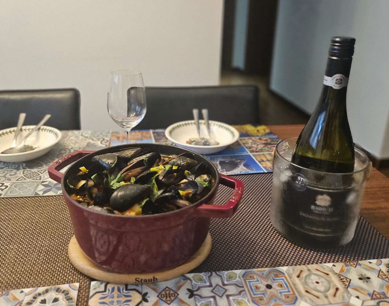 날씨가 쌀쌀해지는 늦가을. 홍합 철이 오면 토마토홍합스튜가 떠오른다. 요리 방법은 간단하다. 양파와 마늘을 올리브유에 볶은 후, 홍합 육수와 달짝지근한 토마토 시판 소스를 함께 넣어 끓인다. 마지막에 셀러리를 잘게 썰어 넣어 식감과 향을 더한다. 유럽풍의 해산물 요리이며, 가볍고 편한 음식인 만큼 와인도 저렴한 가성비의 스파클링 와인이나 화이트 와인이 무난하게 잘 어울린다.