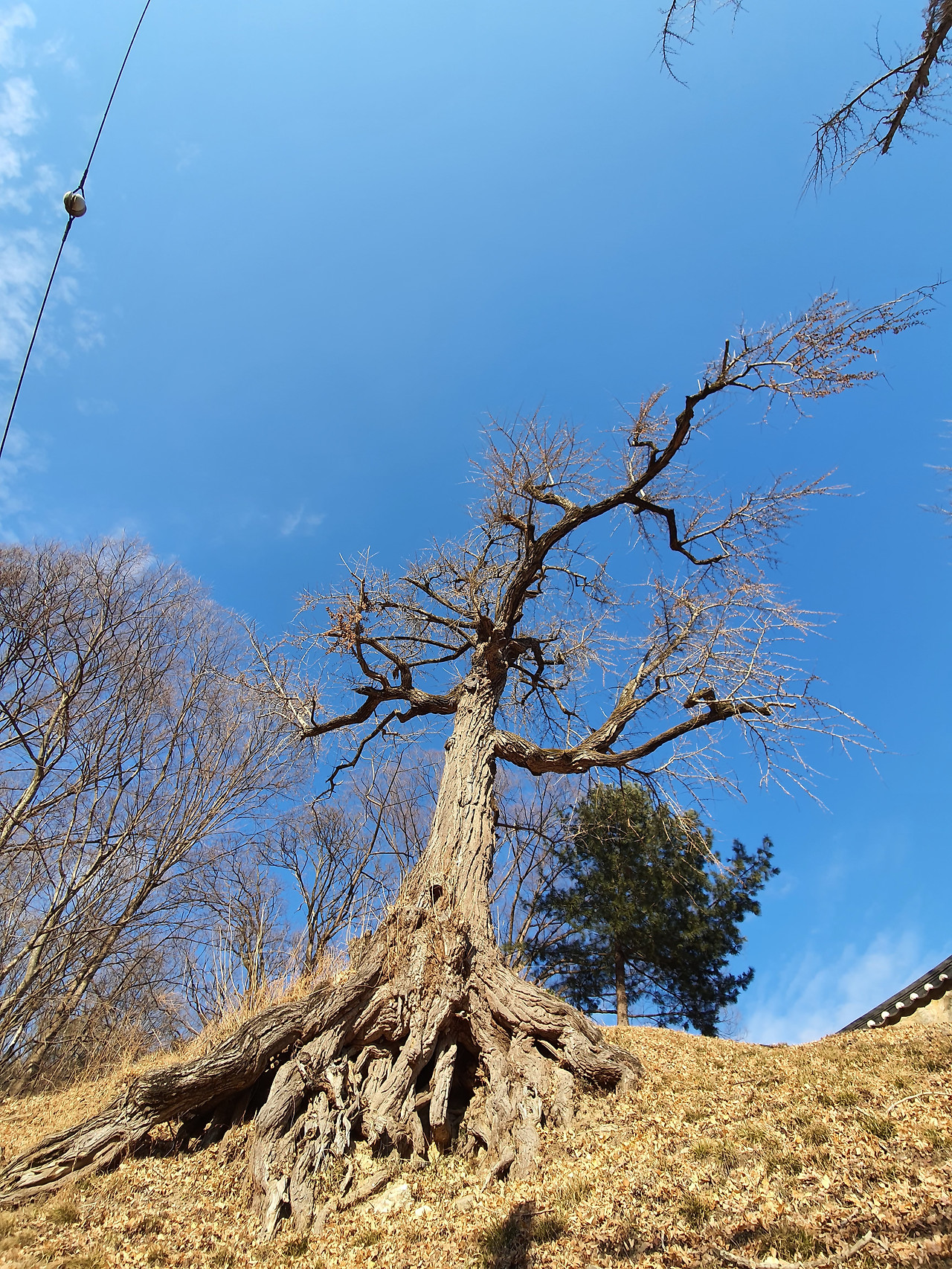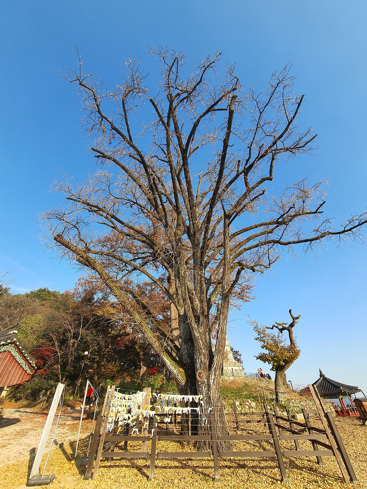 블로그에서 하늘을 가득 채운 노란 단풍이 가득한 나무를 기대했지만 이미 시간은 지나 버린 뒤였다. 하지만 상관없었다. 천 년의 세월만큼 살아온 거대한 은행나무가 눈에 가득 차게 들어왔기 때문이었다. 그것만으로도 충분히 경이로웠다. 많은 사람들 사이에 가려서 보이지 않던 노란 은행잎도 융단처럼 깔려 있었다.