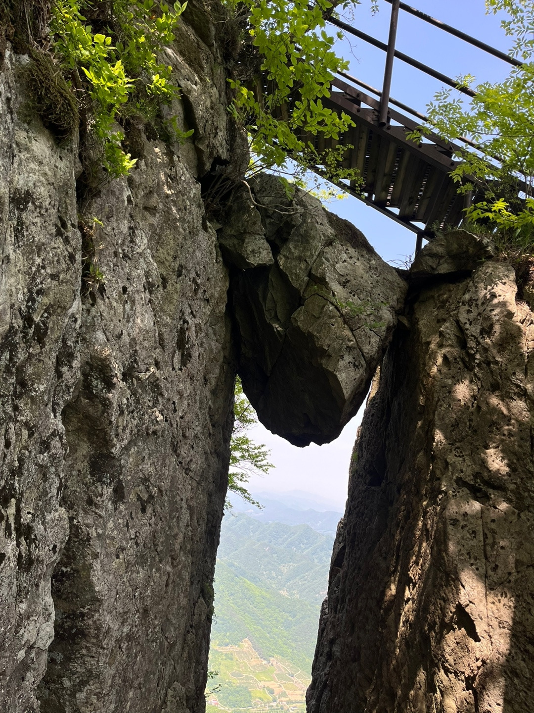 부처님의 가르침은 계속되었다. 중봉을 향해 다시 암봉을 타고 내려가는 계단의 기울기도 가히 공포스러울 만큼 절박했다. 평평하고 편한 길은 없었다. 오직 봉우리 위에 인위적으로 만든 작은 휴게 공간만이 여유를 던져 줄 뿐이었다. 다시 돌아갈 길을 생각하며 뒤돌아 보니 두려움이 엄습했는데, 나중에 알고 보니 나만 그런 건 아니었고 친구도 그랬다.