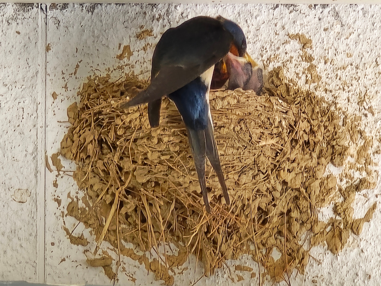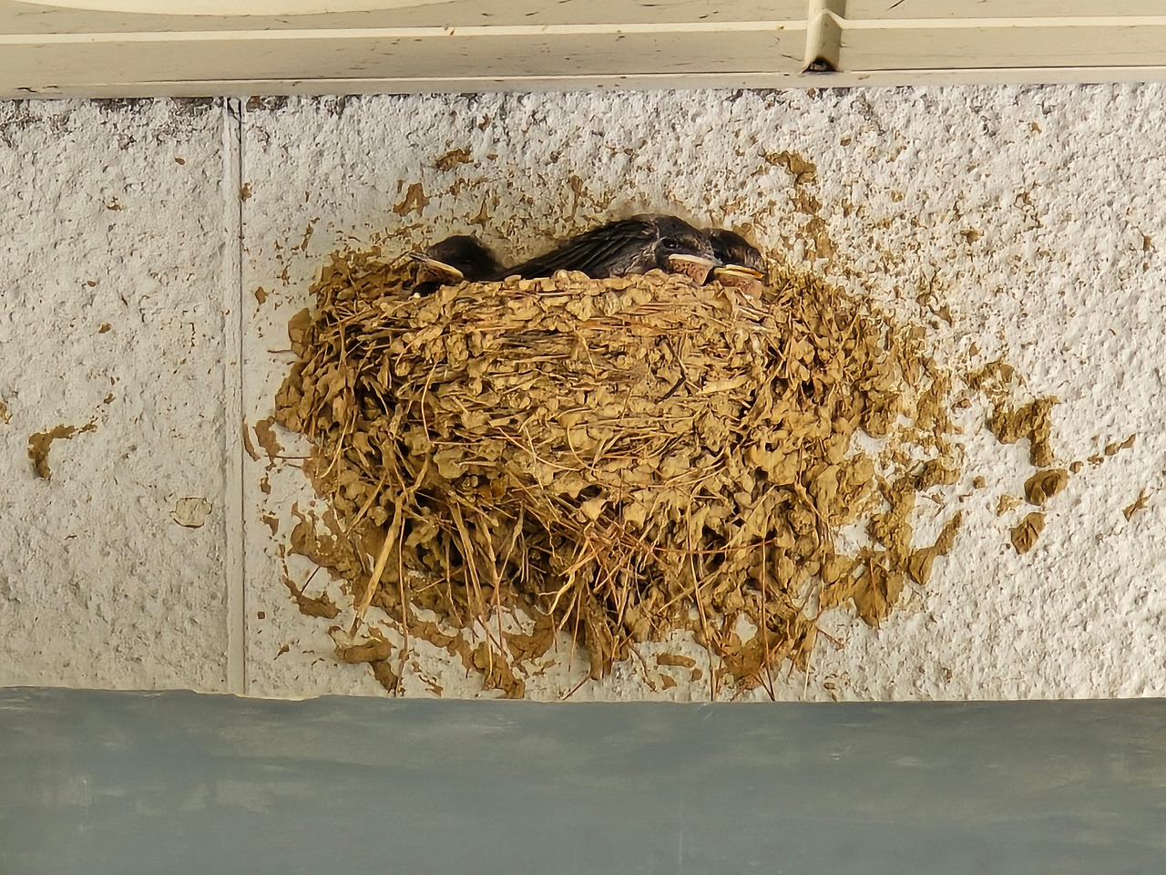 이후 제비 부부의 꽤 오랜 시간(약 2주 정도로 추정됨)의 노력으로 알이 부화해서 세 마리의 제비가 태어났다. 생명신비의 다큐멘터리를 리얼로 보는 재미가 더해졌다. 점심 식사 후 한참을 그 앞에서 사진도 찍고 동태를 관찰하며 담소를 나눴다.