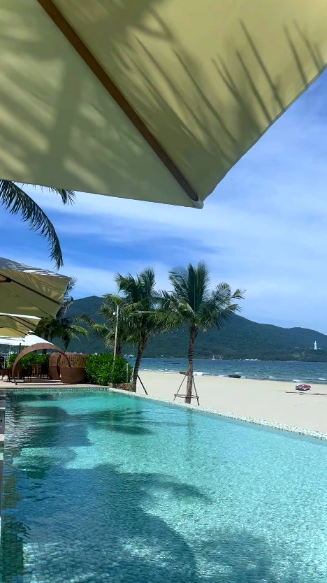 길 건너편 해변 모래사장 쪽에 호텔 전용 인피니티 풀이 따로 마련되어 있습니다. 건물 1층 로비를 통해 나가면 직원분이 횡단보도까지 동행해 안전하게 건너도록 도와주시는데, 특히 오토바이들이 쌩쌩 다니는 베트남에서, 왕복 4차선 도로 건너편에 수영장이 있다고? 바다랑 같이 있어서 당연히 뷰는 좋겠지만, 결코 장점이 될 수는 없다고 봅니다.