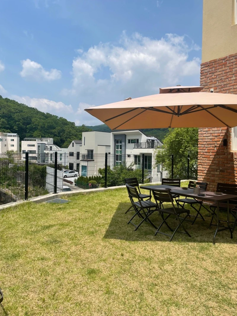 저녁 무렵 아들을 재우고 둘이서 커피 한잔 마시러 마당에 나올 때, 주마다 손님이 나올 때
