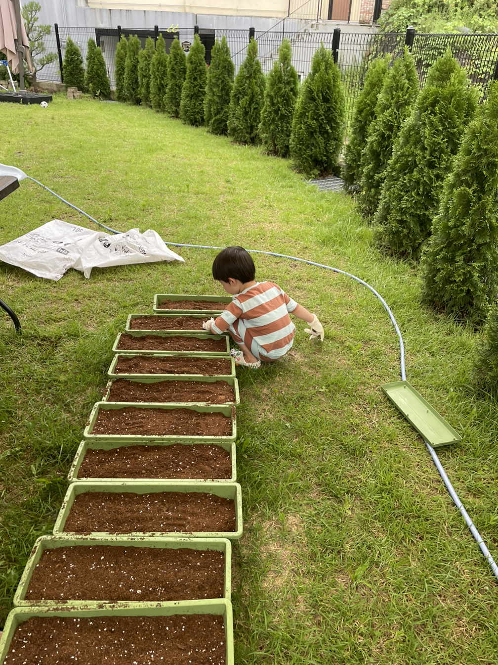 하지만 마당을 넓게 쓰고 싶은 마음에 텃밭보다는 화분에 작은 씨앗을 심고 싹을 틔워 나만의 농작물을 길러보고 싶은 마음이 컸던 거 같다