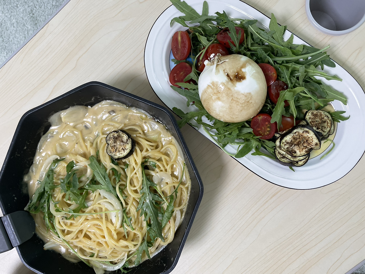 봄에는 시댁에서 갖 따서 보낸 방울토마토를 부리다 치즈와 루꼴라를 곁들여 올리브오일, 발사믹을 곁들인 샐러드를 내면 고급 샐러드 요리가 완성된다