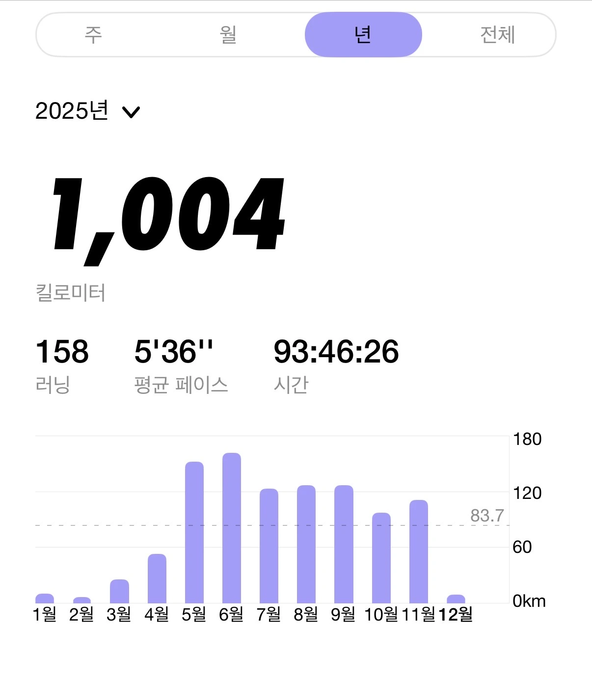 25년도 5월 부터 거진 월 100km씩 뛰었다.