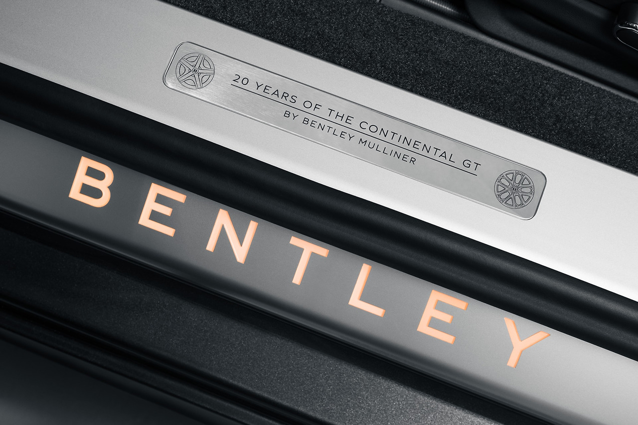 센터 콘솔과 대시보드에 새겨진 그래픽은 컨티넨탈 GT 1세대 및 현 3세대 모델의 실루엣 형태로, 모던 벤틀리의 아이콘이 진화해 온 과정을 보여준다. 도어에 부착된 LED 웰컴 램프에도 위대한 그랜드 투어러의 20주년을 기념하는 유니크한 디자인이 적용됐다.