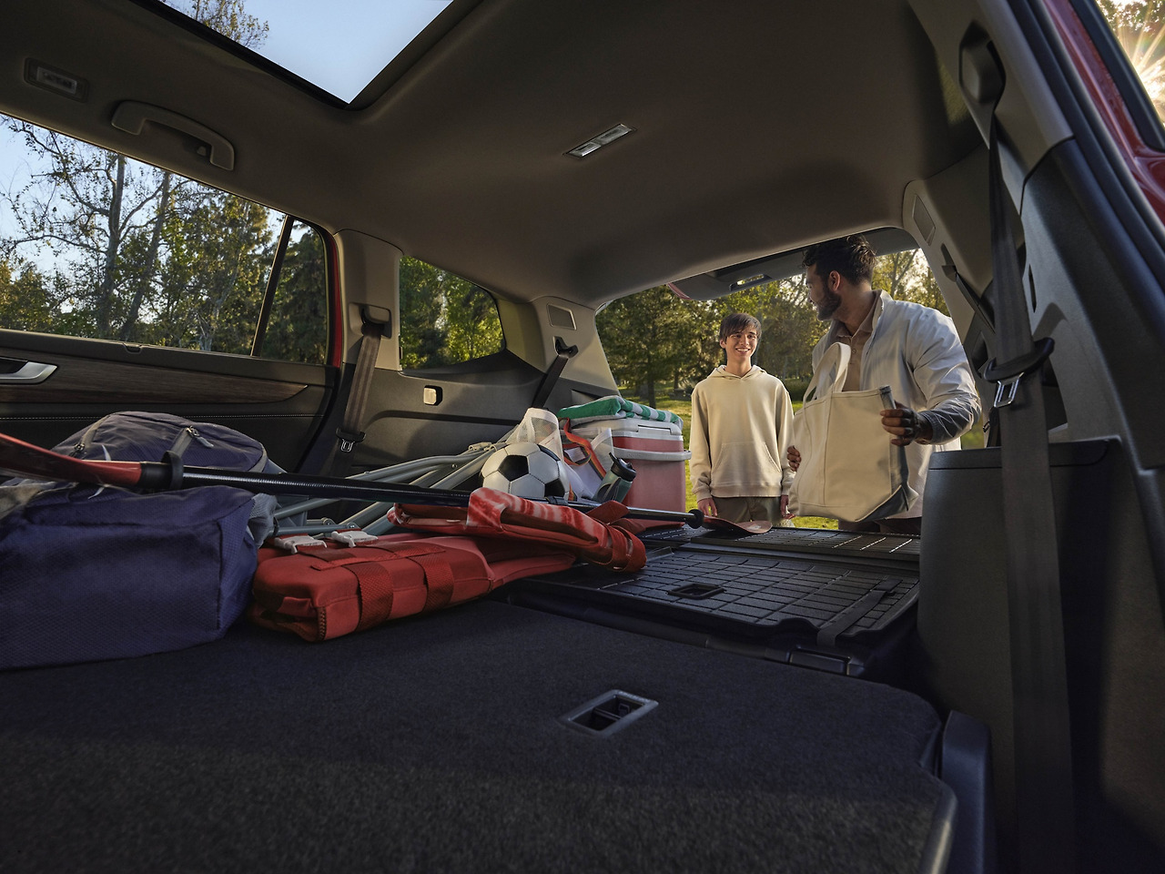 큰 크기만큼 기본 트렁크 용량이 583리터에 달하며 3열 폴딩 시 1,572리터, 2열 폴딩 시 2,735리터의 적재 공간을 자랑합니다. 물론 풀 플랫 폭스바겐의 기능명으로는 플랫 폴딩이 제공돼 공간 활용도를 높였습니다. 3열 시트가 50:50으로 접히는 것이 특이하죠.