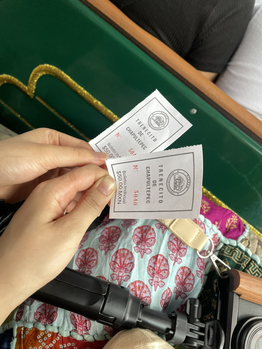 7. 동물원을 다 구경한 후 나오니 회전목마가 있었다! 안 타고 지나갈 수 없어서 탔다ㅎㅎ 그리고 차풀테펙 공원을 한 바퀴 도는 열차를 탔다. 에버랜드의 사파리 투어 열차처럼 생겼는데, 차풀테펙 공원의 주요 장소를 정류장 삼아 돌아다닌다. 정류장에서 한 15분 정도 기다리니 우리가 탈 수 있는 열차가 오더라. 열차가 오면 그 때 표를 사고 타면 된다.