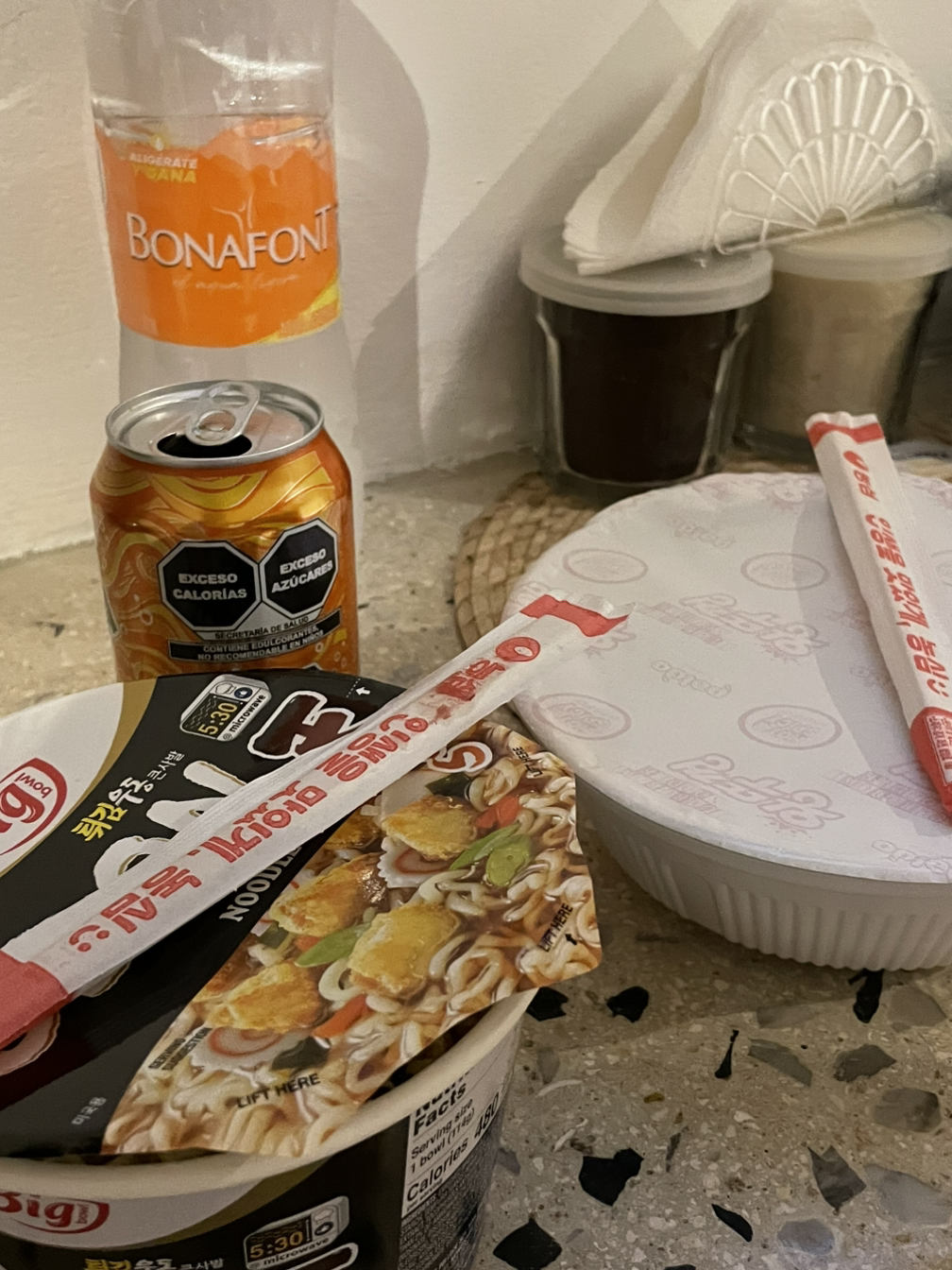 12. 잠깐 나가 바로 옆 OXXO에서 물을 사서 돌아왔다. 아까 사온 컵라면을 끓어 먹으며 피로회복을 좀 했다. 솔직히 이젠 미국 교환학생에서 어떤 고난이 와도 오늘을 생각하며 이겨낼 수 있을 것 같다...ㅎㅎ