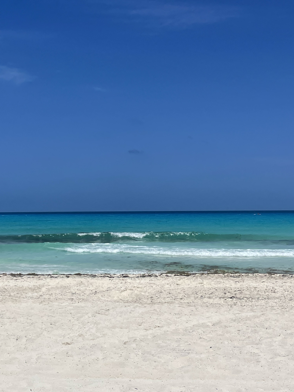 8. 에어컨 아래에 좀 앉아있으니 괜찮았다. 그래도 여기까지 왔는데 예쁘다는 칸쿤 바다는 봐야지 싶어서 해변가로 갔다. 백사장이라서 눈을 제대로 뜨기가 어려웠다. 선글라스가 필수다. 갈매기가 많았고 물은 미지근했다...!