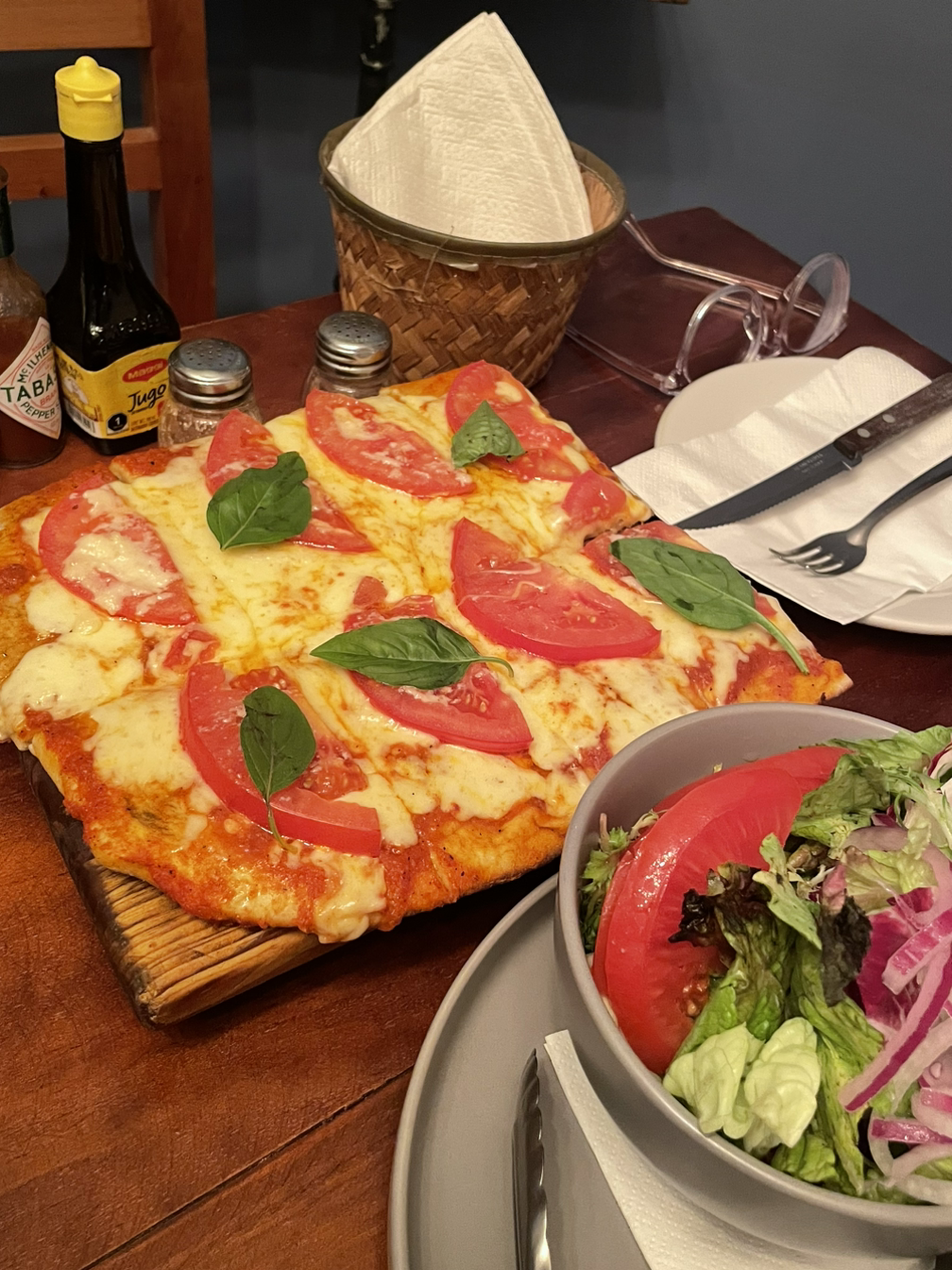 14. 숙소로 돌아온 우리는 오랜 샤워를 했다. 몸이 깨끗해지니 사람이 행복해지더라. 개운한 상태로 좀 쉬다가 숙소 바로 옆 레스토랑에 갔는데, 정말... 지금까지 멕시코에서 먹었던 음식 중 가장 맛있게 저녁을 먹었다. 피자는 도우까지 맛있었고 파스타와 샐러드도 좋았다.