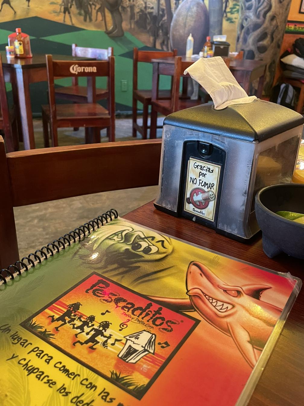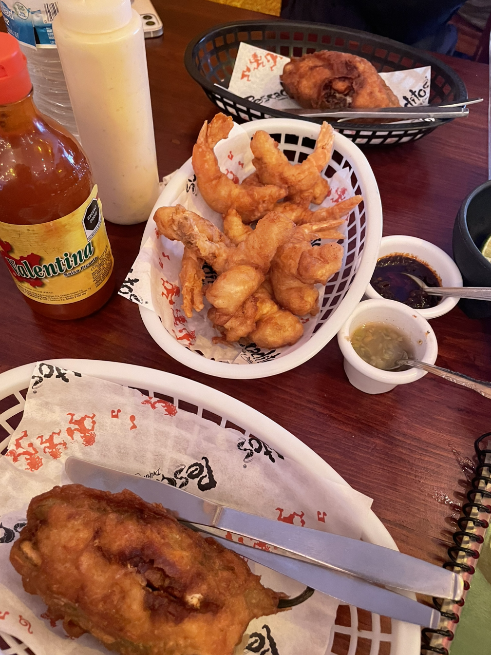 3. 어제 가려다가 실패한 유명 해산물 음식점에 갔다. 다행히 이 곳은 에어컨을 틀고 있었다. 그런데 안쪽에 자리가 있었음에도 야외에서 먹는 사람들이 많았다. 이 사람들은 칸쿤의 더위에 익숙해진 것일까? 신기했다. 음식점에서 추천을 받아 메뉴를 시켰는데 둘 다 튀김이라 살짝 느끼했다. 새우튀김의 새우가 굉장히 통통하고 맛있긴 했다. 주변 현지인들이 볶음밥 같이 생긴걸 시키던데, 그게 인기메뉴였나 보다. 조금 아쉬웠다.
