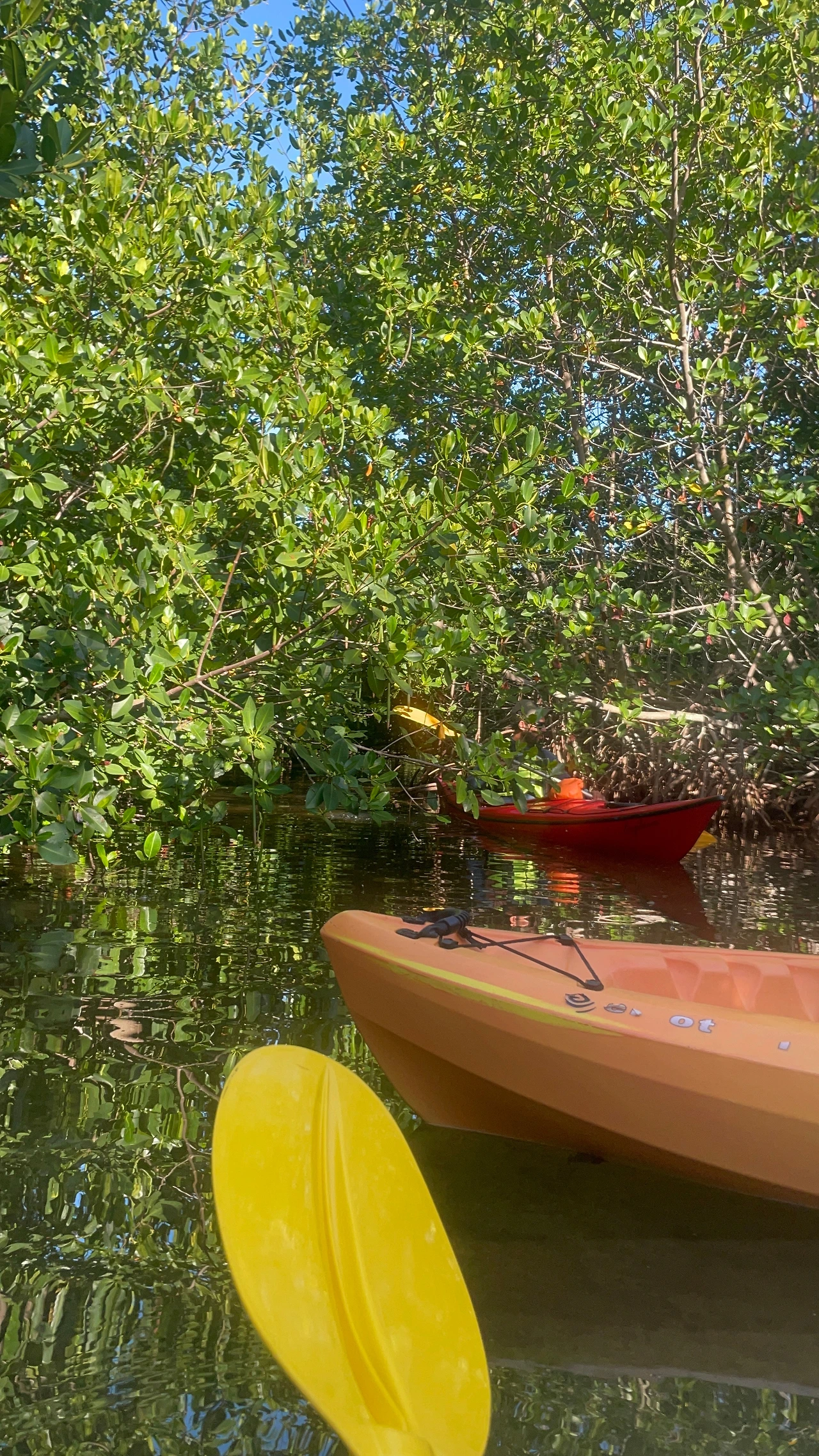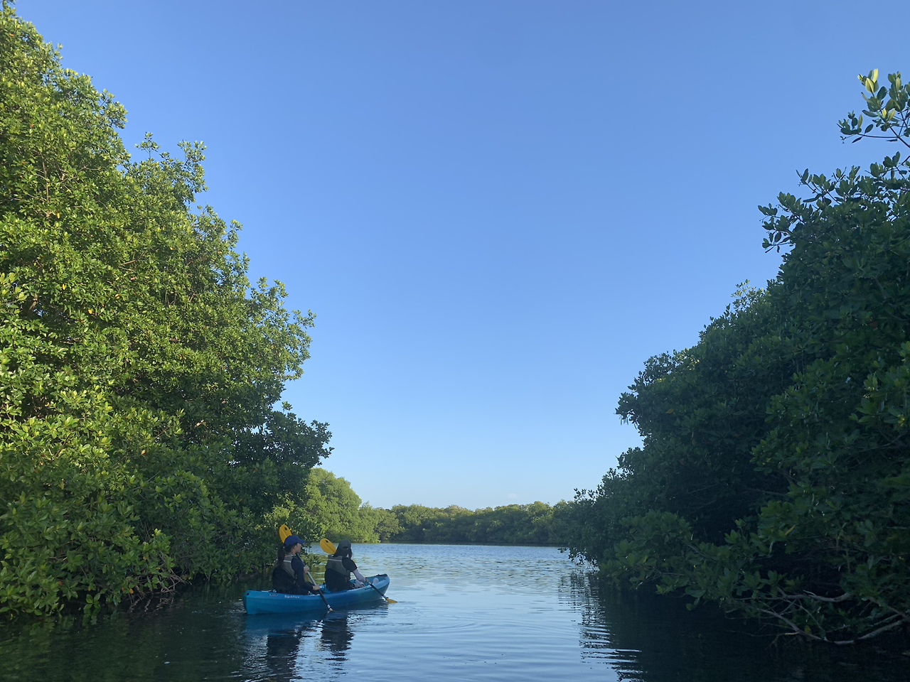 7. 카약은 난생 처음이었는데 생각보다 방향 잡기가 어려웠다. 잠시 연습을 해보는데 나와 친구는 자꾸 왼쪽으로 방향이 틀어져서 웃겼다. 칸쿤의 바다와 맹그로브 숲을 카약을 타고 2~3시간 정도 돌아보는 코스였다. 처음에는 긴장해서 팔에 힘이 잔뜩 들어갔는데 점점 익숙해졌다. 카약 정류장을 떠나 숲으로 들어갔다.