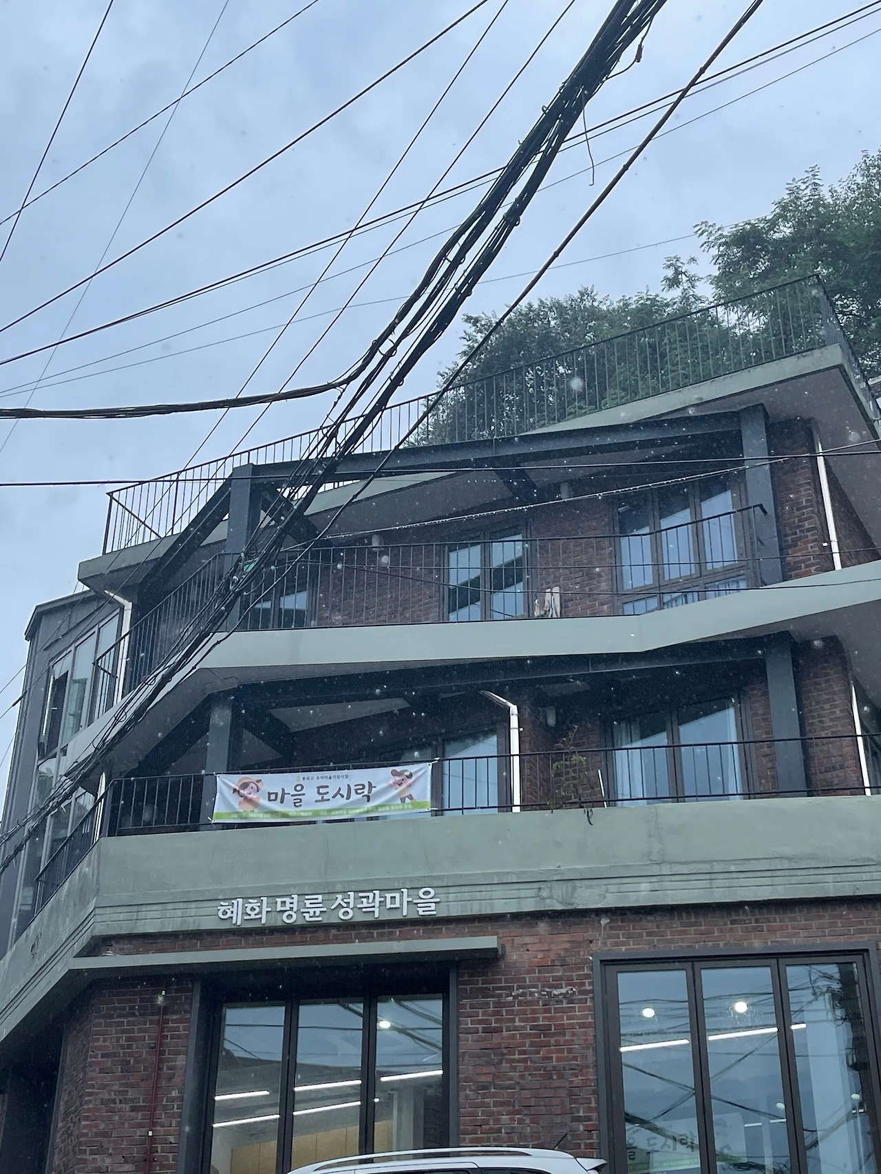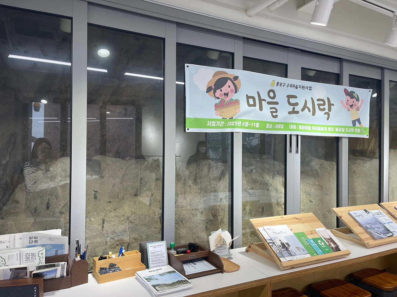 종로구 혜화마을은 언덕이 많다. 굴곡진 그 지형에 맞춰 자연스럽게 어우러진 낮은 건물들이 있다. 꽤 가파른 언덕을 올라가면 돌레길 협동조합 센터가 나온다. 마을 주민들이 모여서 영화를 보거나 다양한 프로그램을 진행할 수 있는 공간이 있고, 취식이 가능한 공간도 있고, 테라스에는 장을 담가 둔 항아리도 있었다. 곳곳에서 돌레길 여행사의 흔적을 발견할 수 있었다. 지형과 어우러진 혜화 마을의 특성을 보여주는 것처럼, 1층의 커다란 창문 너머는 돌벽이 있었다. 그 벽을 허물거나 가리지 않고, 자연에 맞춰 함께 존재하는 쪽을 택하신 것이다. 비가 내리던 날, 우리는 돌레길 정지혜 대표님을 만났다.