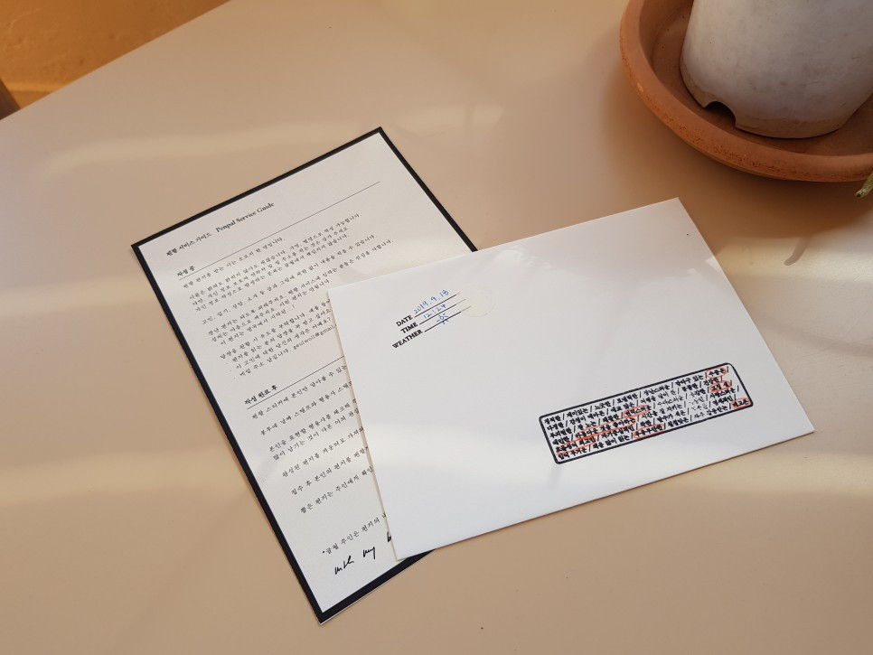 “이건 뭐에요?” 물어보니 펜팔 서비스라고 했다. 받는 사람이 정해지지 않은 누군가에게 편지를 쓰고, 또 누군가 쓴 편지를 가져가는 서비스. 가격은 5천원. 내가 쓴 편지가 내가 모르는 누군가에게 전해진다니, 그리고 나는 누군가 쓴 편지를 받게된다니! 왠지모를 낭만에 나도 선뜻 서비스를 이용하게되었다.