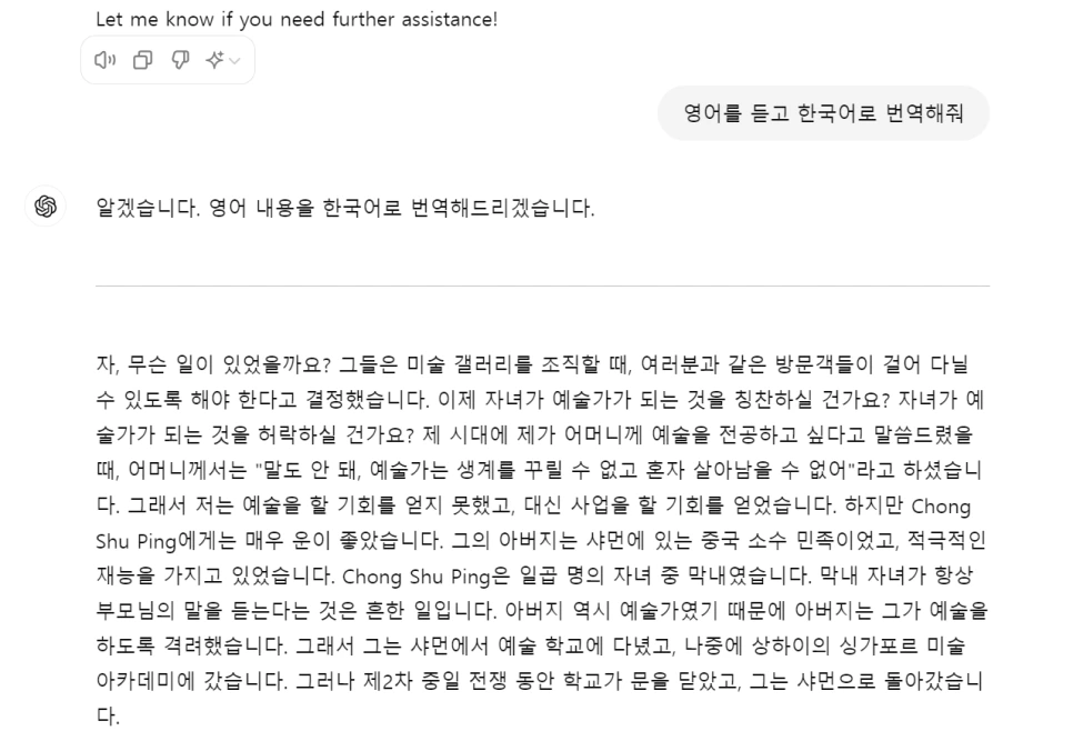 정말 실시간으로 통역, 작품 설명 이미지를 찍으면 그대로 번역까지 가능했다.