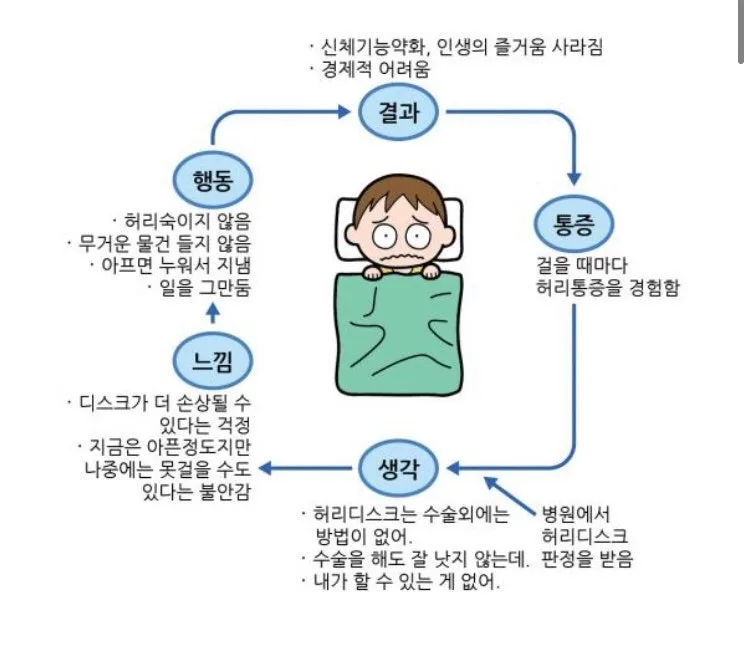 허리통증의 악순환고리. 책 '안녕, 통증' 속 삽화.
