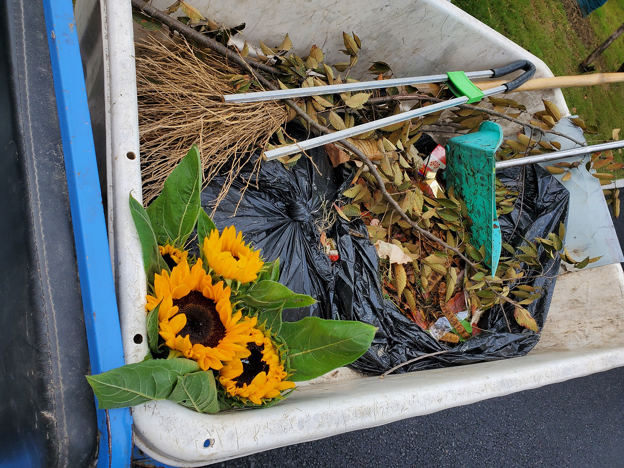 청소 카트에 담긴 채
