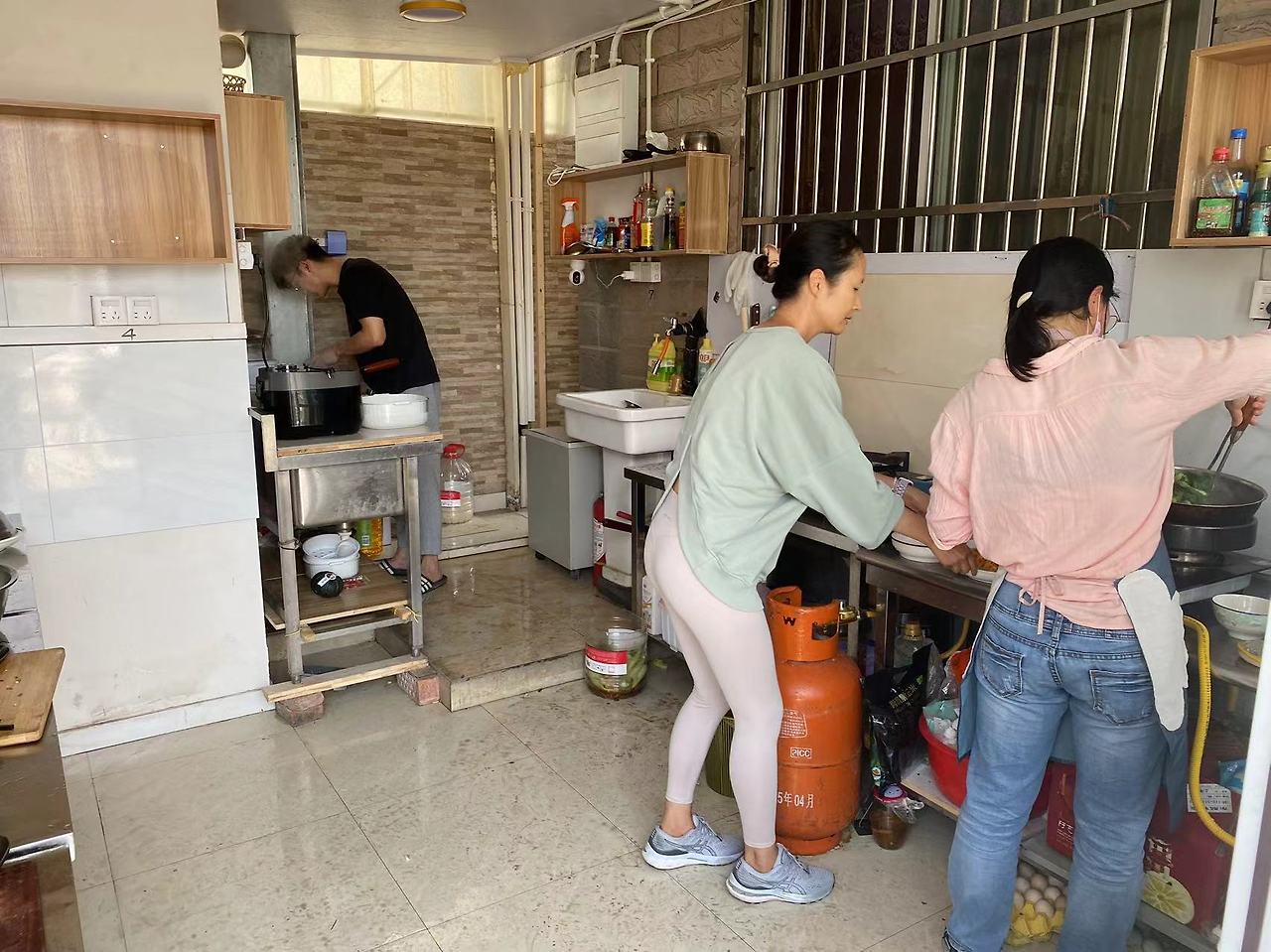 공용주택의 공용주방은 여럿이 각자의 식사를 만든다.