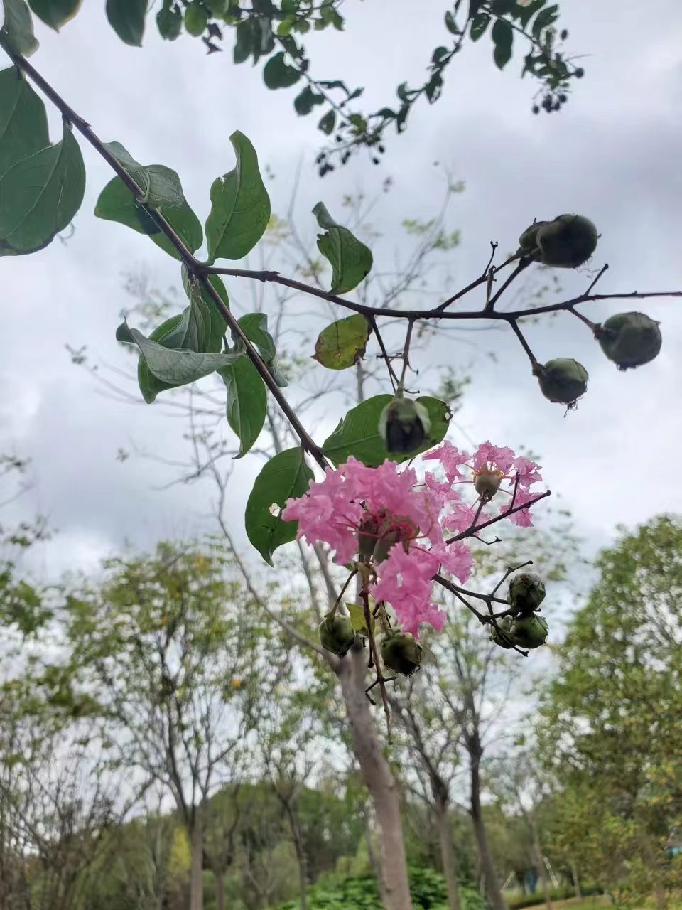 배롱나무 가지 끝에 핀 연분홍 꽃에 씨앗이 맺혔다. 애교 가득한 작은 씨앗 주머니 안의 수많은 날개.