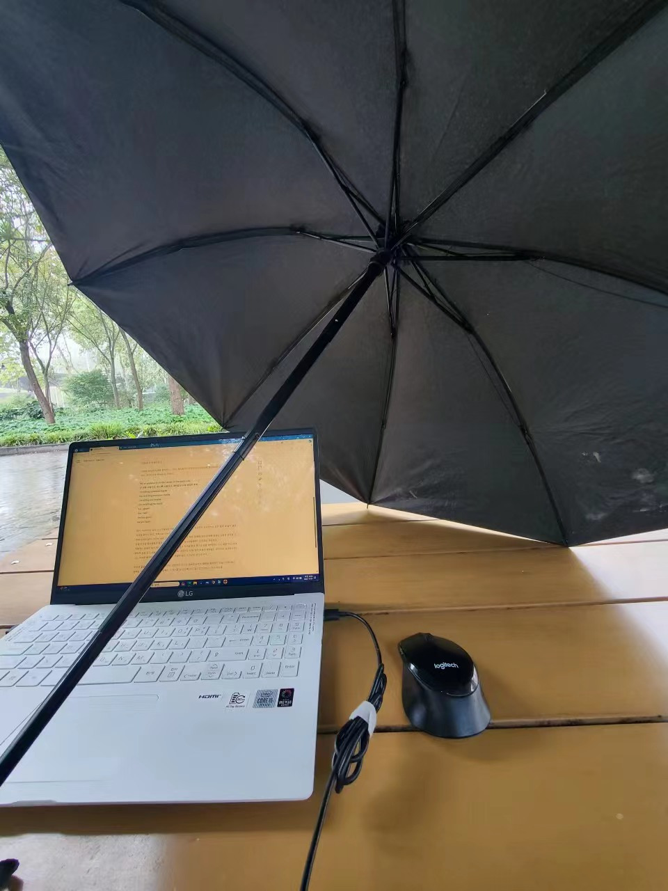 빗방울이 바람에 날려 지금 이 자리에 들어치고 있다. Stella Jang의 노래를 들으며 그녀의 목소리가 빗소리와 어울린다고 생각하며 음미하는 중이다. 그러곤 조용히 속삭인다. '난 내 일을 하면 된다.'