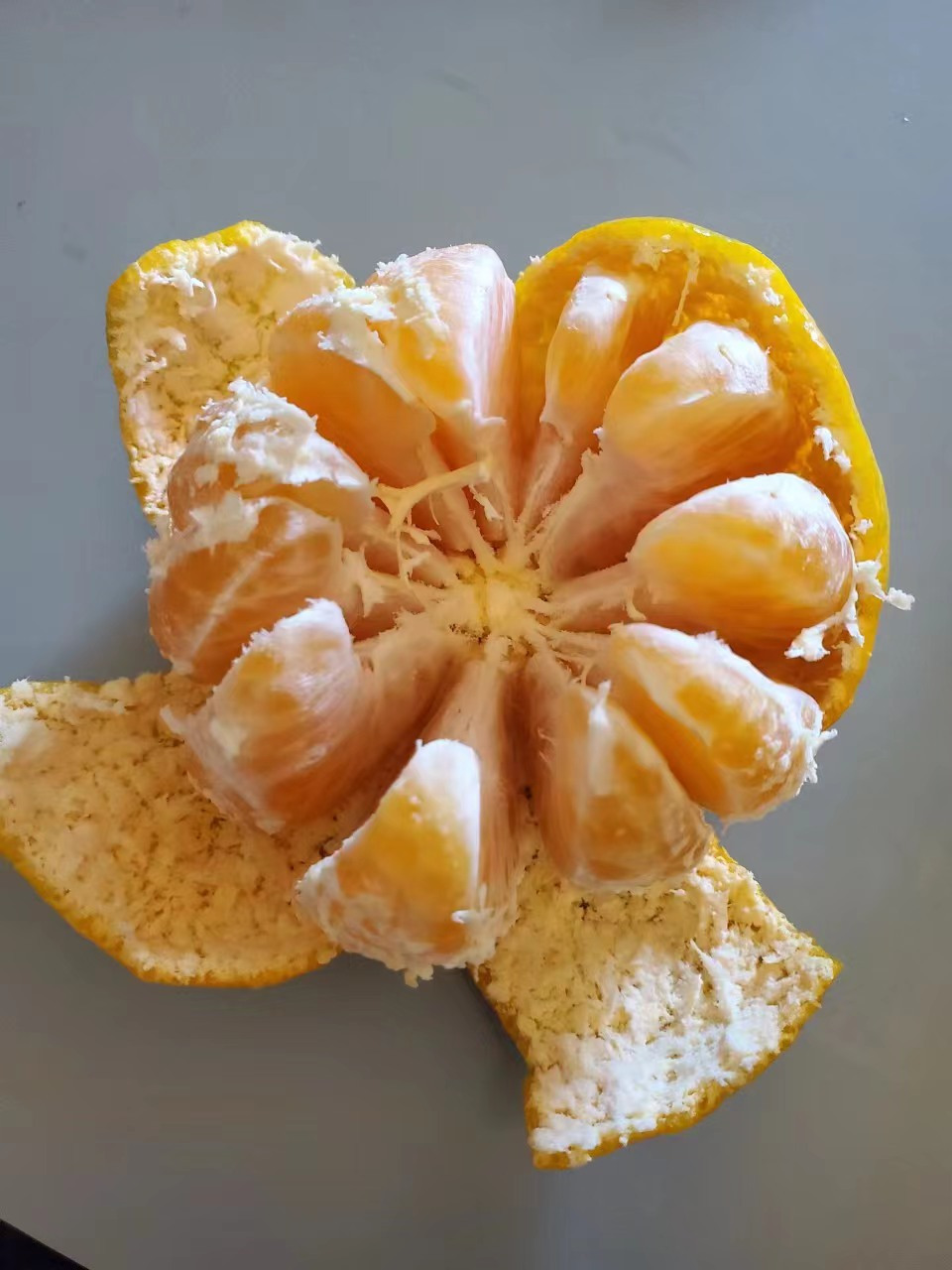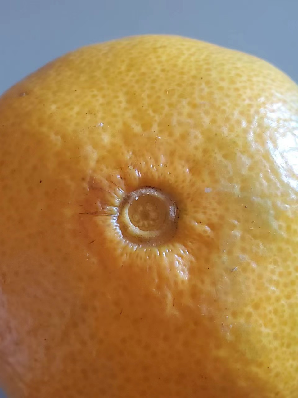 꼭지를 손톱으로 떼어내면 과육으로 영양이 전달되는 관다발의 단면이 보인다. 그 개수가 바로 귤 조각의 수.