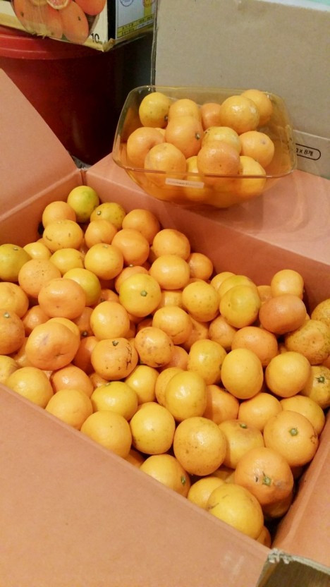 안 쪽 매대에 자연스럽고 은은하게 윤나는 귤을 찾았다. 길거리 상점이 아닌 청과점에 파는 귤은 만지면 참 보드랍다. 이것은 귤을 수확하여 상자에 옮겨 닮기 전에 일일이 특수 장치 안에서 굴려지며 눌려지기 때문인데, 덕분에 맛은 더 달콤해진다. 맛없는 귤을 손바닥에 혹은 탁자 위에 굴려주면 당도가 높아진다는 스펀지(KBS의 호기심 실험 프로그램)의 실험이 여전히 온 국민을 굴리게 한다.