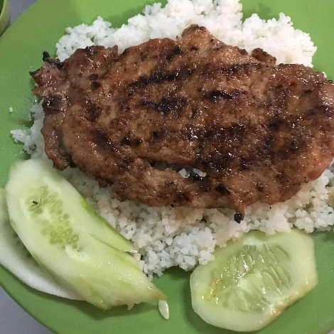 베트남 대표 서민 음식, Cơm Tấm (껌 땀 - 돼지갈비 덮밥)은 1,500원 ~ 2,000원.