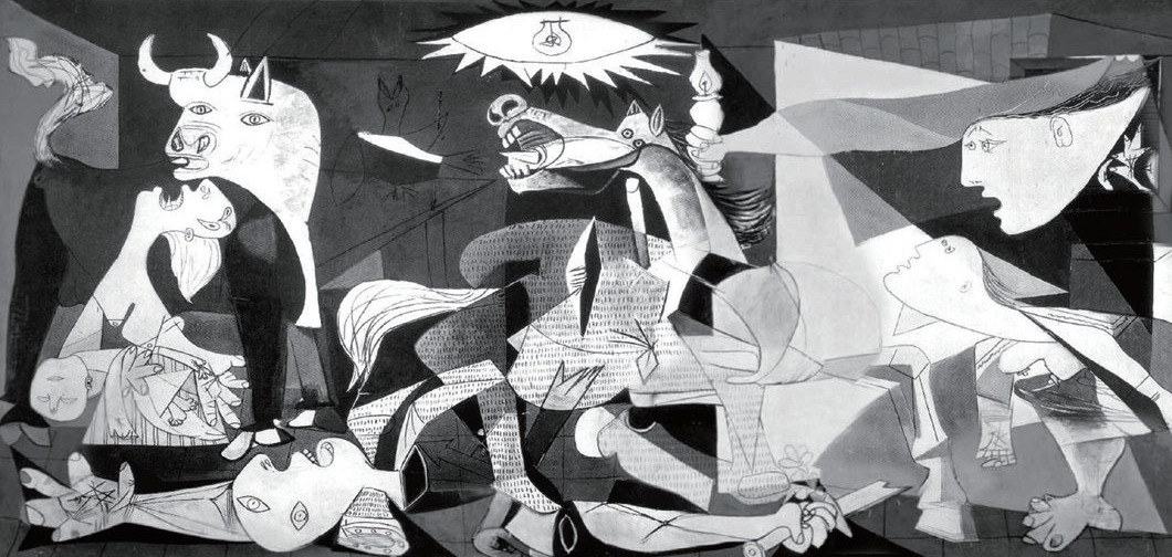 사실 피카소는 이전에도 한번 이와 같은 주제로 그려낸 작품이 있었습니다. 바로 그의 대표작 중 하나로 잘 알려진 대작 <게르니카>입니다.