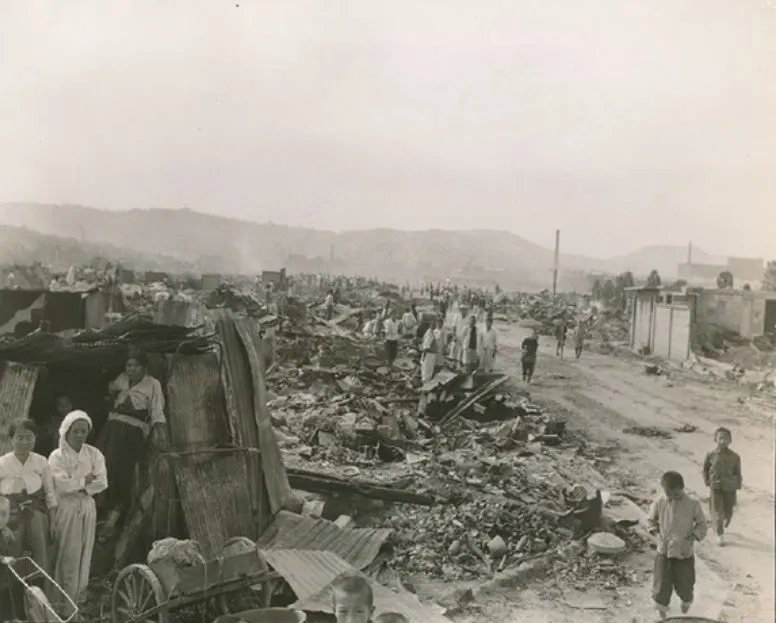 (좌) 폐허가 된 고향 집터를 배회하는 피난민들 / (우) 서울로 돌아오는 피난민들 / 출처 6.25 국가기록원