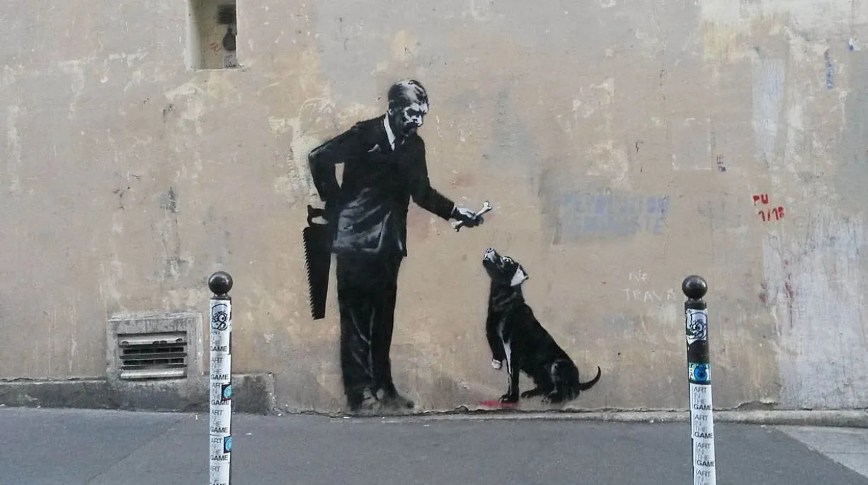 이 이야기를 왜 하냐구요? 바로 범인과 오늘 소개할 그림 이야기가 밀접한(?) 관련이 있기 때문이랍니다. (깜짝 놀랄 범인의 정체는 마지막에!) 궁금증을 뒤로하고 만나볼 오늘의 주인공은 희대의 스트리트 아티스트, 익명의 길거리 화가 뱅크시입니다.
