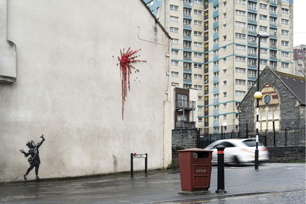 영국에서 주로 활동하고 있는 뱅크시는 길거리, 담벼락, 도시의 숨겨진 곳곳에 홀연히 의미심장한 작품들을 남기고 사라지면서 이름이 알려지기 시작했는데요. 비폭력 또는 반폭력 메시지, 전쟁과 가난에 대한 경각심 그리고 기존 예술에 대한 비판의식 등 자신만의 주관이 뚜렷한 철학을 스텐실 기법을 활용하여 그래피티(스프레이 페인트를 이용한 벽화)로 표현하는 예술가입니다.