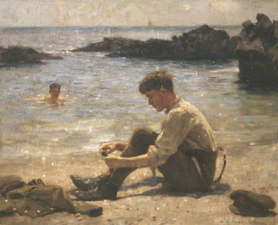 헨리 스콧 튜크, A Cadet on Newporth Beach, near Falmouth with Another Boy in the Sea그의 작품들은 우리에게 찬란하게 빛나는 어느 여름날의 순간을 떠오르게 한다. 봄 햇살보다는 더 뜨겁고, 싸늘한 가을바람보다는 덜 식은 적당한 청춘의 온도를 그려냈달까. 그 여름날은 누군가에겐 그 열기가 한 김 식고 난 과거일 수 있겠고, 다른 누군가에게는 아직 다가오지 않았을 수도 또는 현재 지나가고 있을 수도 있을 것이다.