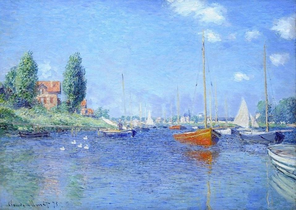 (좌) 카유보트, 아르장퇴유의 강변 / (우) 모네, 아르장퇴유의 붉은 배들 / 아르장퇴유에서 만난 모네는 그 당시 화가의 길을 포기하려던 카유보트에게 격려의 말을 건냈다