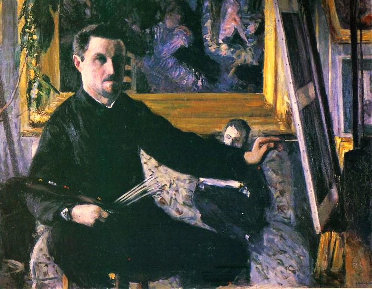 카유보트, 이젤 앞의 자화상, 1879-1880 / 카유보트는 동료 화가 르누아르의 <물랭 드 라 갈레트>를 사들였다. 그리고 그림의 일부를 본인 자화상에 그려 넣었다.